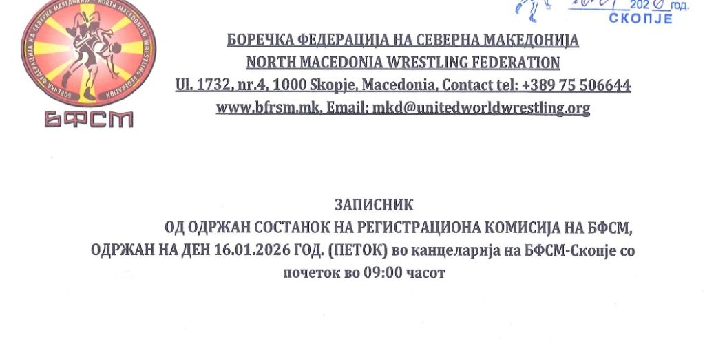ВЕСТИ, ДОКУМЕНТИ, ДОКУМЕНТИ, ПРАВИЛНИЦИ Записник од одржан состанок на регистрациона комисија одржана на ден 16.01.2026 год. Записник од одржан состанок на регистрациона комисија одржана на ден 16.01.2026 год. Записник од одржан состанок на регистрациона комисијаDownload Screenshot 49-ти Меѓународен турнир,,Македонски Бисер,,09-10.05.2025 год. Скопје